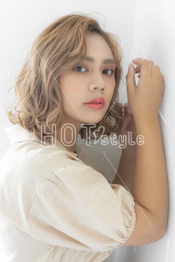 ボブベースでカット、表面にレイヤーを入れてふんわり感を出して。ブリーチ後、クールベージュでエレガントなイメージに。