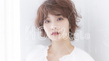 耳下にレイヤーを入れて、全体はグラデーションでカットする。2回転ぐらいのロッドでランダムに巻く。
