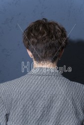 サイドにツーブロックを入れ、マッシュベースでカットする。ツイストパーマをランダム巻きにし、縦落ちになるように調整。